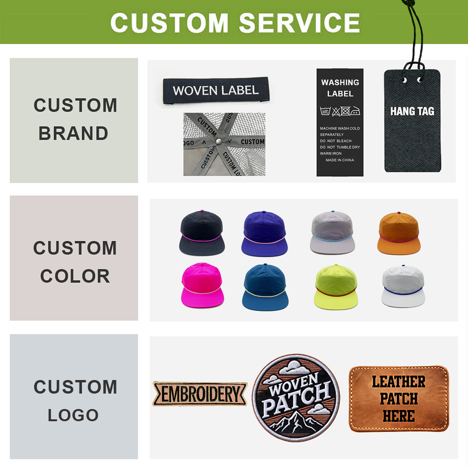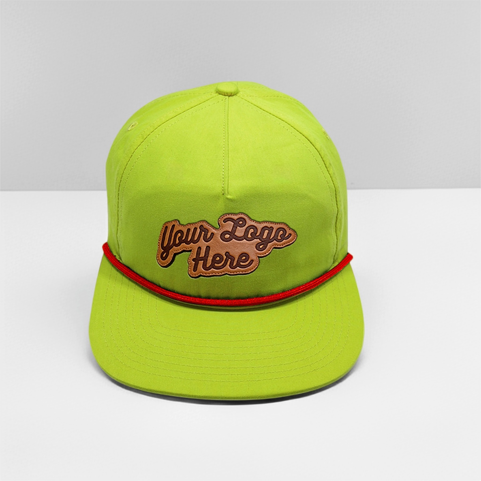 Casquette de baseball sportive OEM ODM personnalisée en cuir avec logo brodé, visière plate, calotte haute, unie, 5 panneaux, snapback, 256 Rope Hats