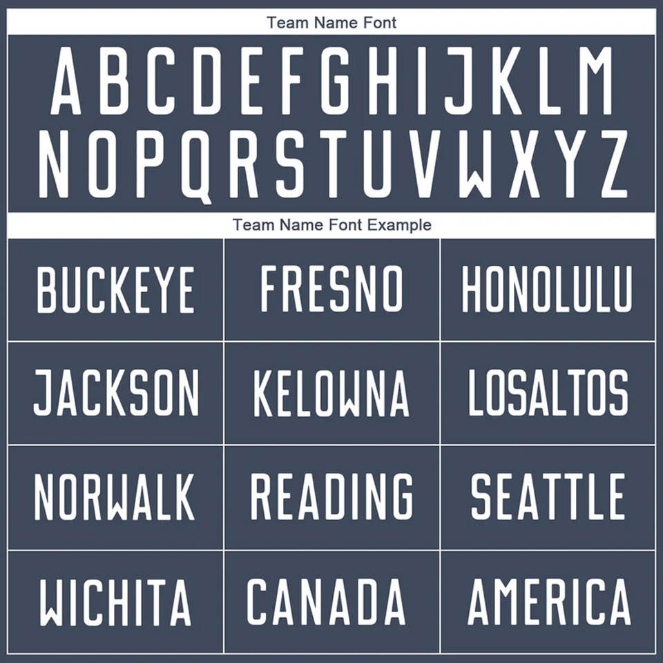 Solide, Impression, letter, Bordé, Blocage de couleur, Couleur Gradient, Nom du joueur, Nom de l'équipe, Numéros de l'équipeType de motif