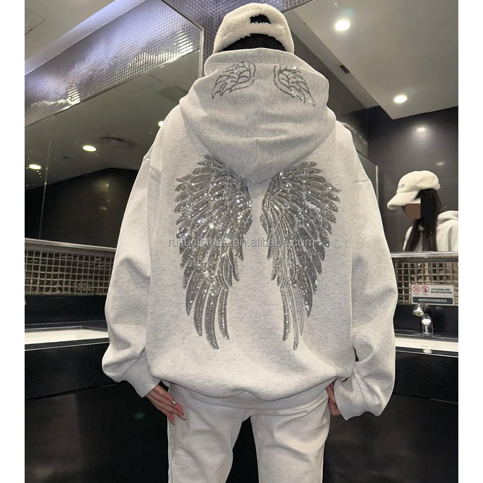 Sweat-shirts personnalisés OEM ODM de luxe avec broderie 3D en strass, impression sur sweat-shirt streetwear en coton surdimensionné pour hommes