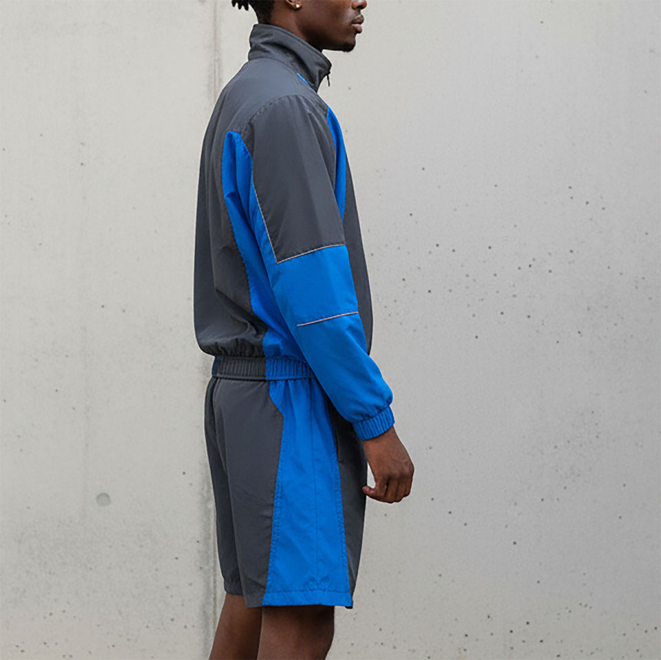 Ensemble de jogging deux pièces en nylon et polyester sur mesure OEM/ODM, avec empiècements color block, coupe-vent, tendance, pour homme
