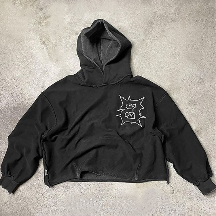OEM & ODM Streetwear personnalisé en détresse recadrée voyage cordon unisexe surdimensionné lavage à l'acide femmes hommes sweatshirts de haute qualité
