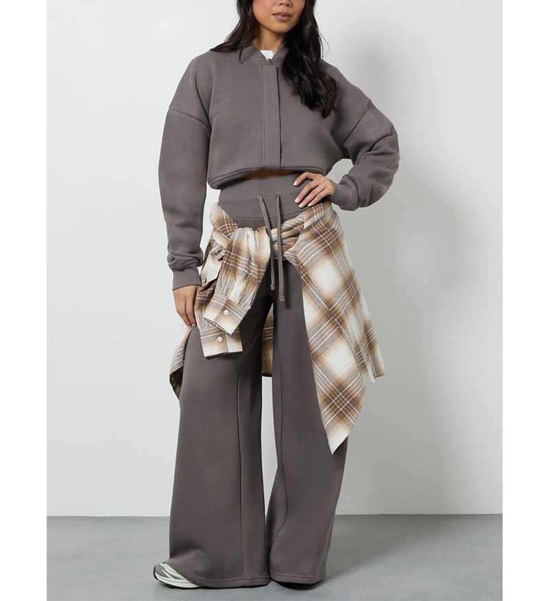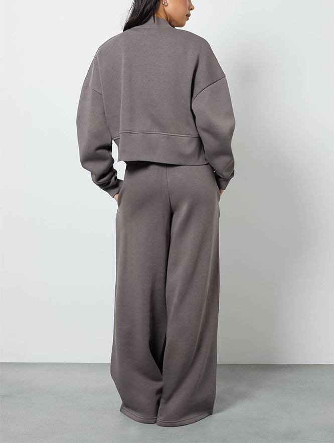 Survêtement en polaire polyester personnalisé OEM ODM avec logo imprimé en relief, veste courte à épaules tombantes style Hip Hop et pantalon droit à cordon de serrage