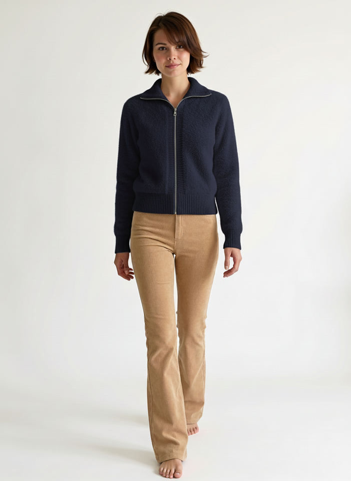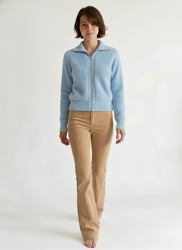 Cardigan d'hiver personnalisable OEM/ODM pour femme – Pull tendance en jacquard duveteux à manches longues – Tricot chaud et doux