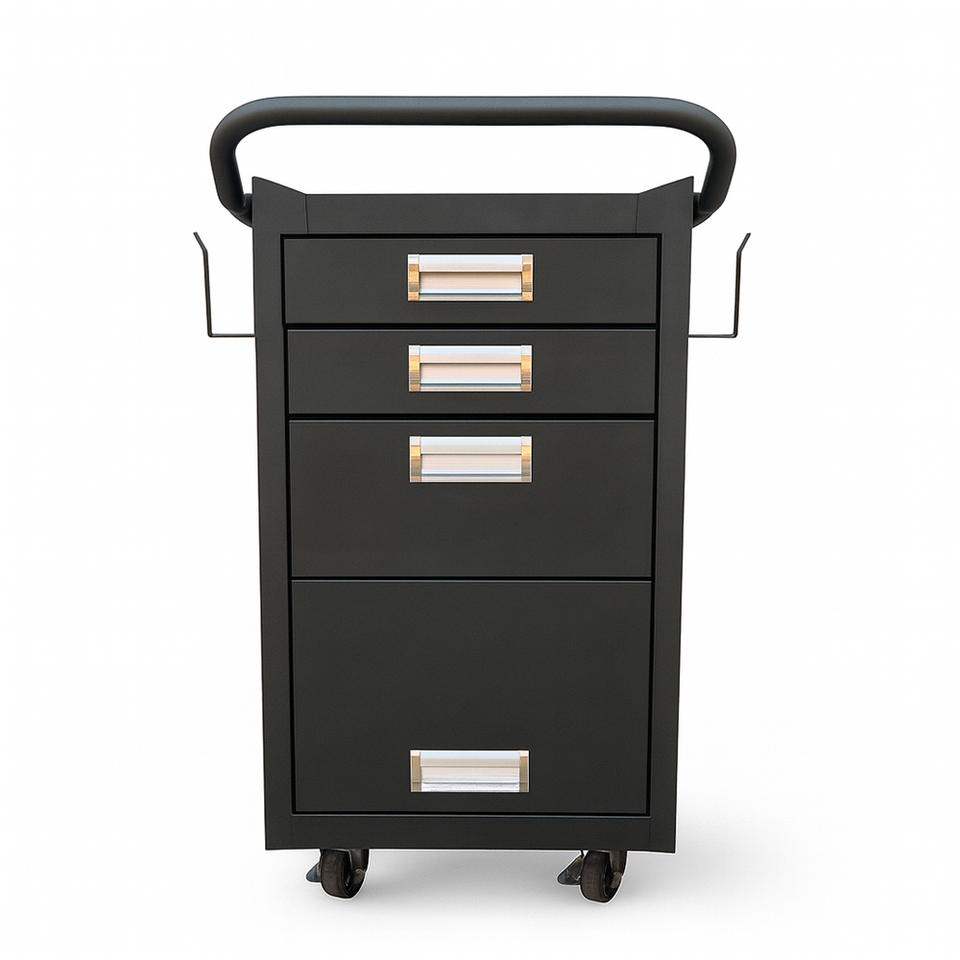 Chariot à quatre roues en métal personnalisable OEM/ODM, pour usage industriel et garage, options personnalisables, modèle GARWMW000