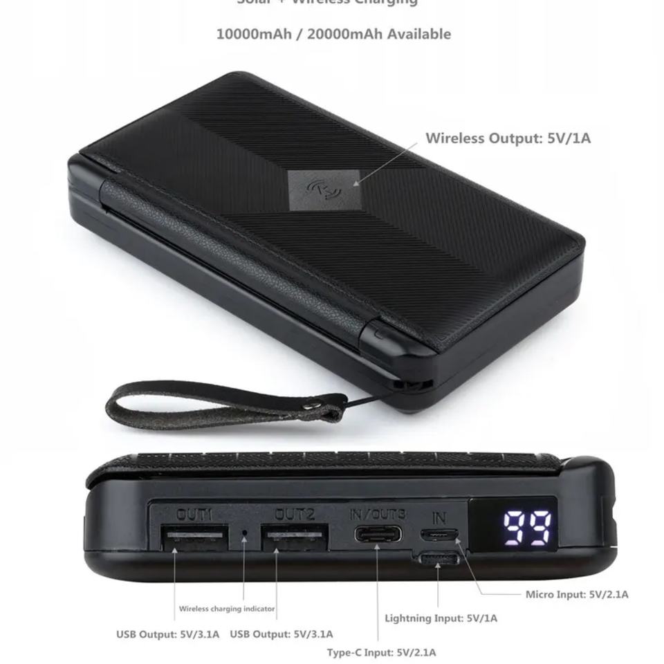 Quick Charge Support, Solar Panel Charge, Led Display, Wireless Charging
