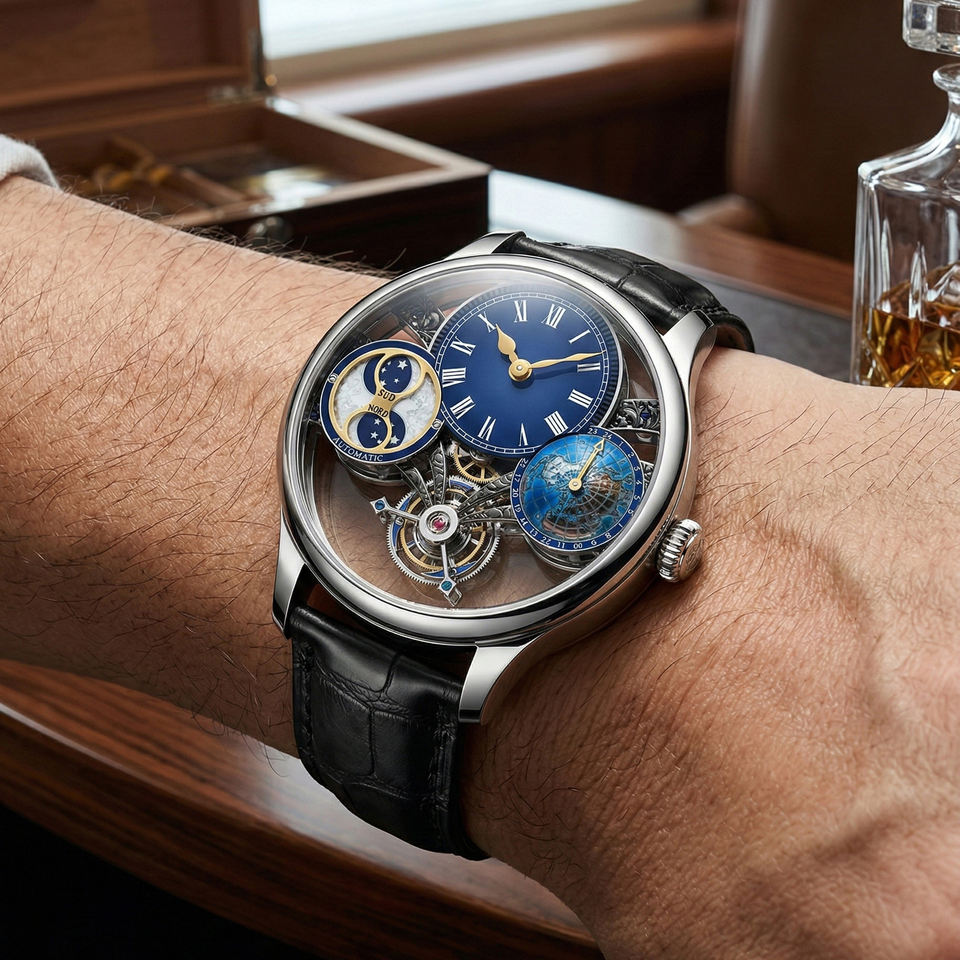 Montre squelette automatique mécanique 24H avec mouvement NH38, design unique et luxueux, logo personnalisé OEM/ODM, verre saphir transparent.