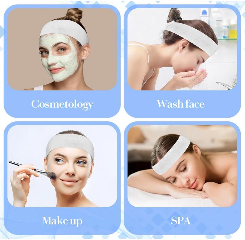 Bandeaux de spa jetables OEM/ODM, bandeaux faciaux doux en non-tissé, bandeaux élastiques pour traitements de beauté, fournitures en gros pour salons et esthéticiennes