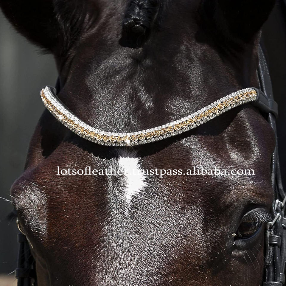 OEM & ODM EQUESTRIAN HORSE LEATHER DIAMANTE BRIDLE WHITE RHINESTONE JEWELED BROBAND SOFTY PADDED NOSEBAND & CROWN BLACK COLOR