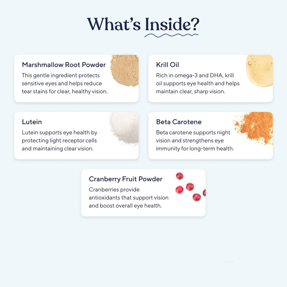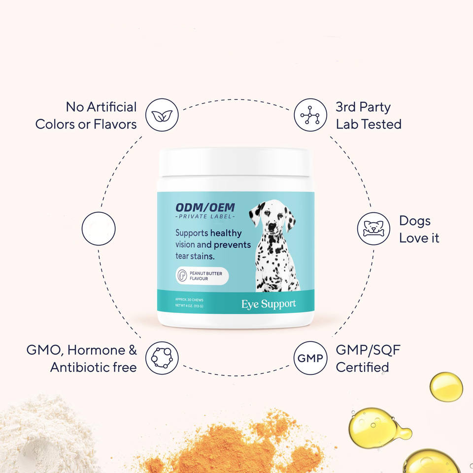 Friandises à mâcher pour chiens, soin des yeux, OEM/ODM | Prévenir les taches de larmes Soutien de la vision | Huile de krill à la lutéine et à l'astaxanthine sans céréales