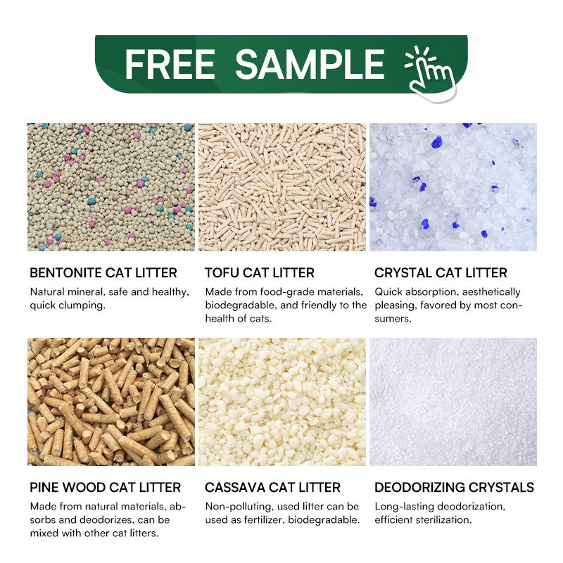 L'usine OEM ODM offre des échantillons gratuits de litière pour chat naturelle à la noix de coco Sable de litière biodégradable pour chat Arena Para Gatos