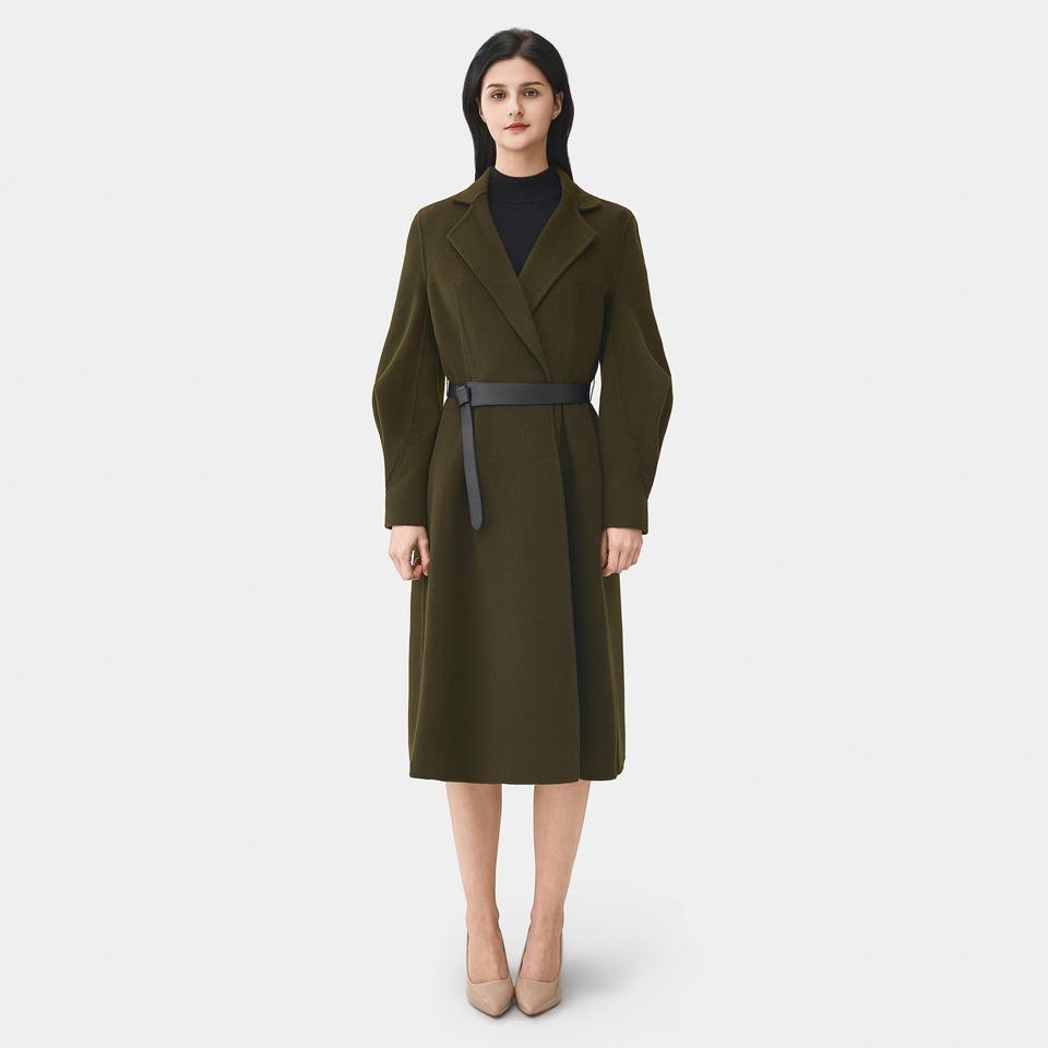 Service d'usine OEM ODM Manteau en laine formel pour femme, col cranté, vert armée, chaud, hiver, logo, 98% nylon, 2% doublure en laine