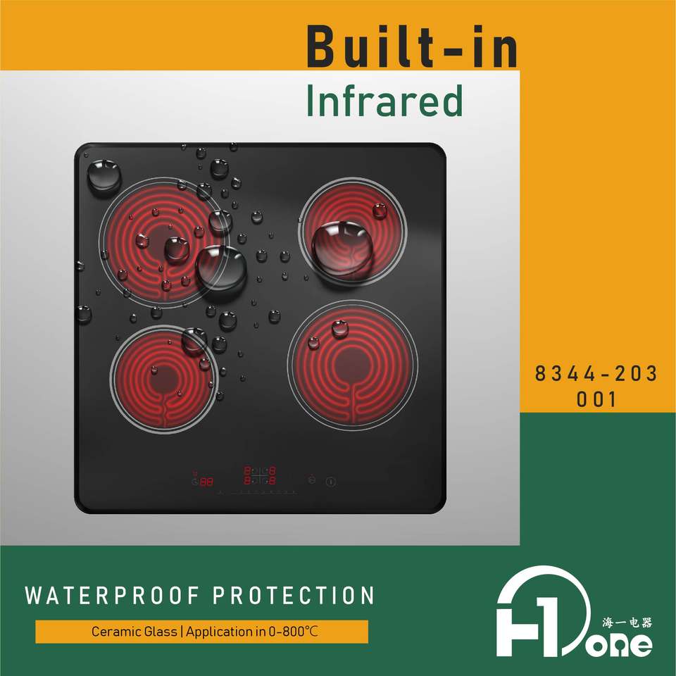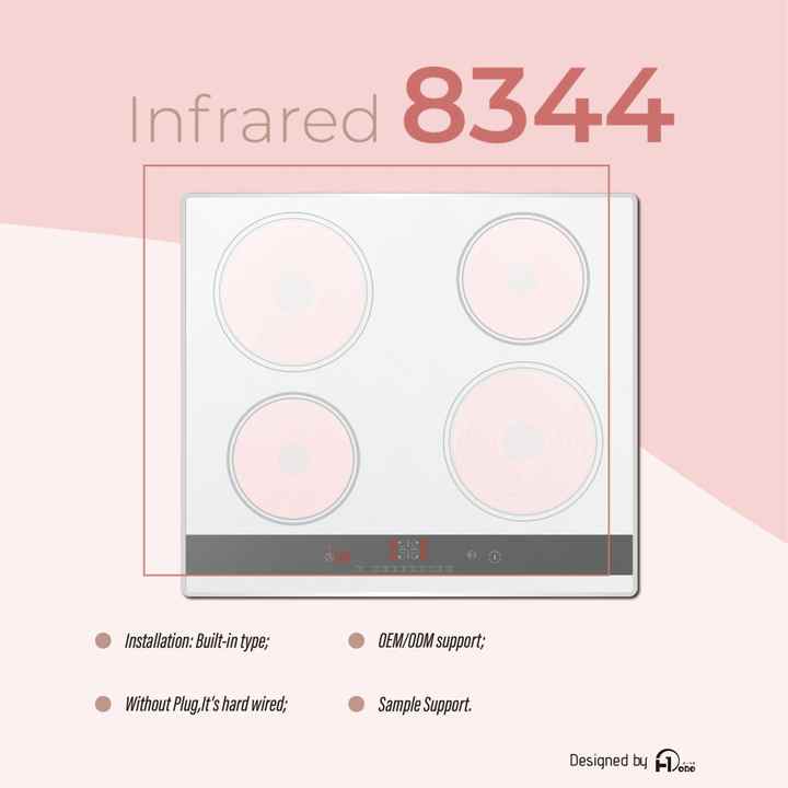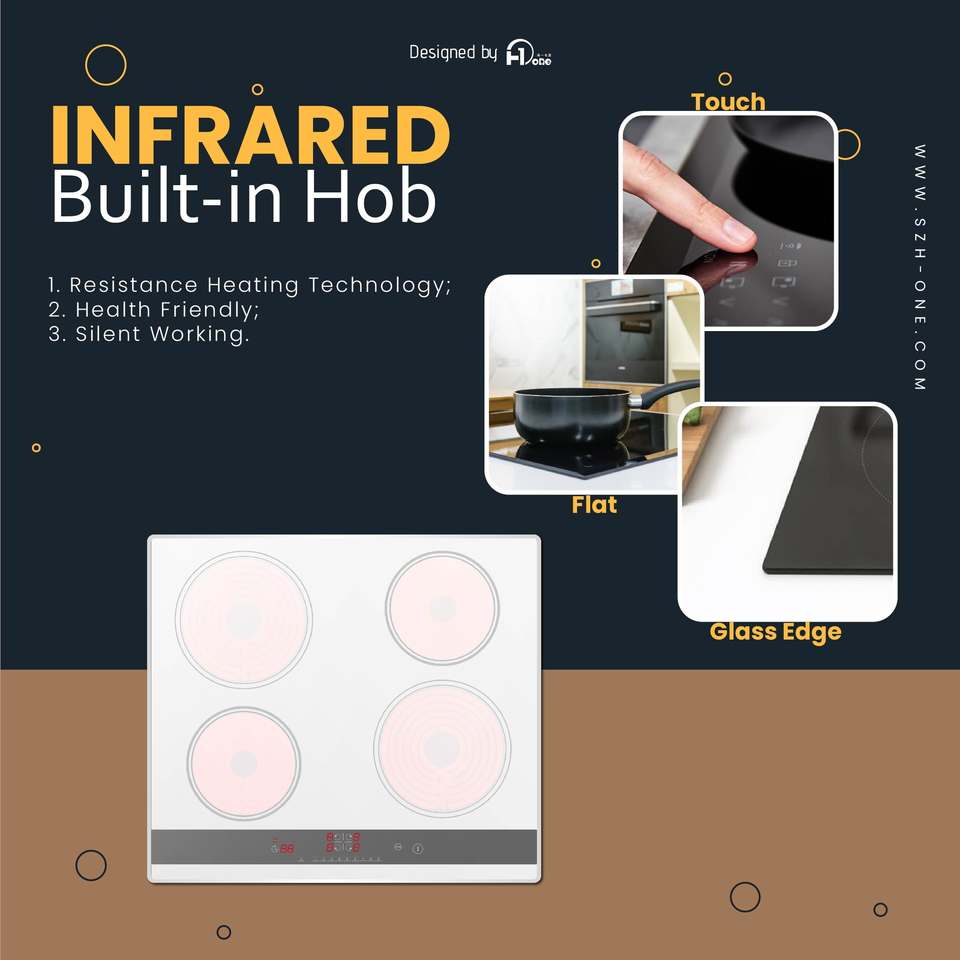 Plaque de cuisson infrarouge OEM/ODM intégrée en 4 zones, cuisinière en céramique 6000W 220V avec anneaux lumineux à commande tactile