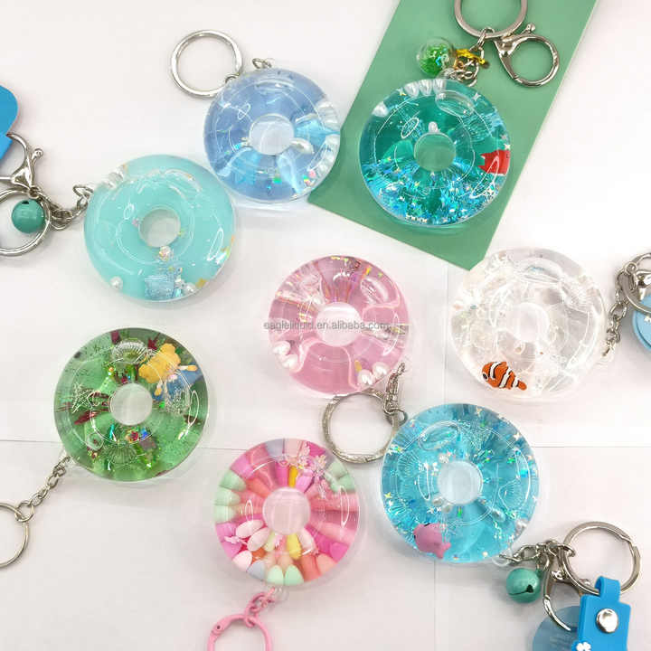 OEM ODM Factory Wholesale Personality Creative Mini Life Buoy Keychain Glitter Sequin Aqua Quicksand Floater Souvenir Gift Toy