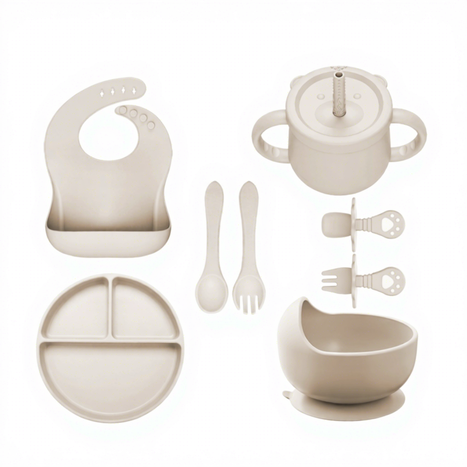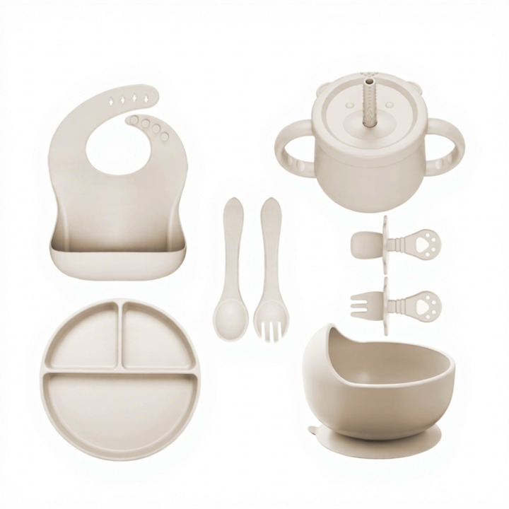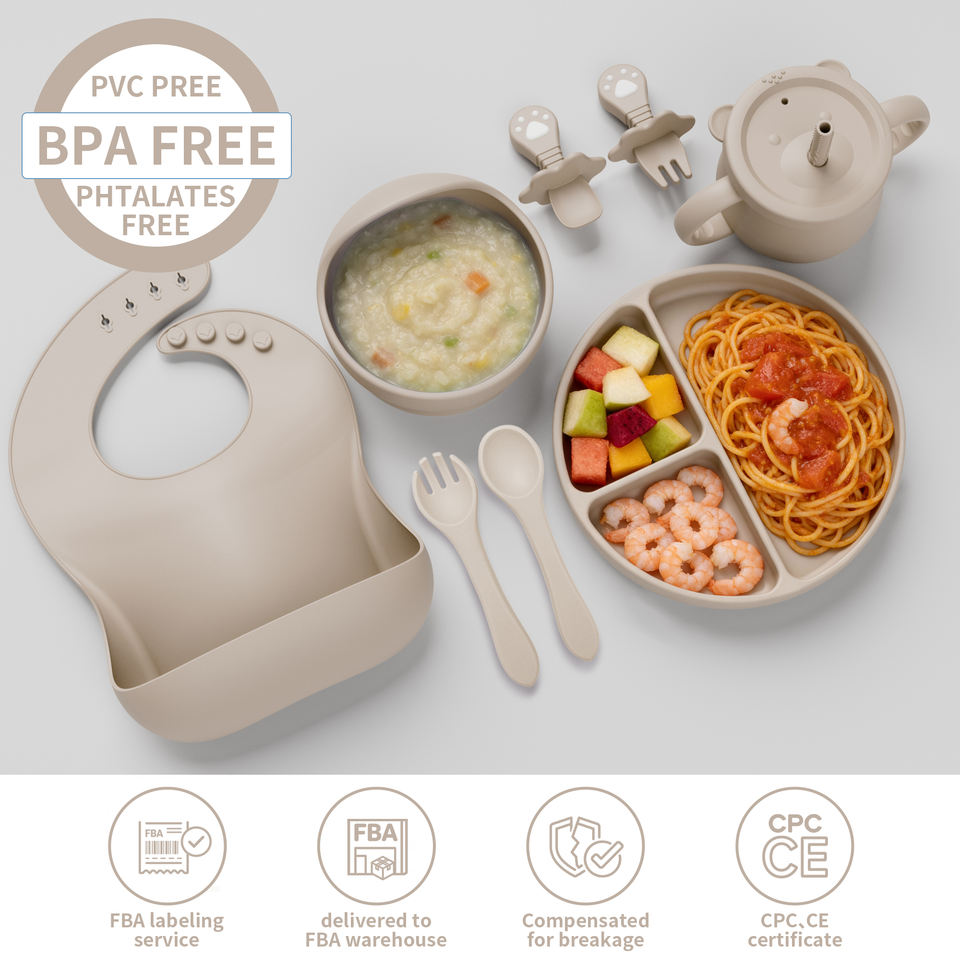 Usine OEM/ODM, vaisselle en silicone sans BPA personnalisée, 8 pièces, cadeaux pour bébés et enfants, produits, ensemble d'alimentation pour bébés en silicone