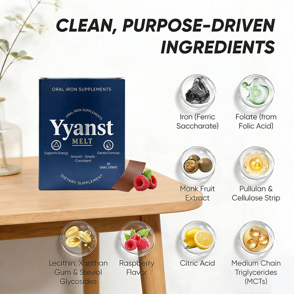 Complément Alimentaire Oral à Dissolution Rapide OEM/ODM au Fer, Soutien Immunitaire et Énergétique, Saveur Framboise, Complément Alimentaire Végétalien pour Adultes en Bandes Orales