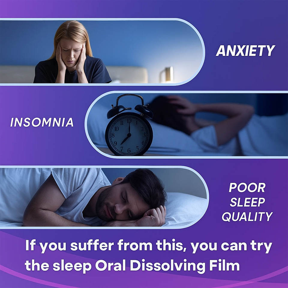 Bandes buccales OEM/ODM à dissolution rapide pour un sommeil profond et un soulagement du stress chez l'adulte, sans sucre, personnalisables, complément alimentaire