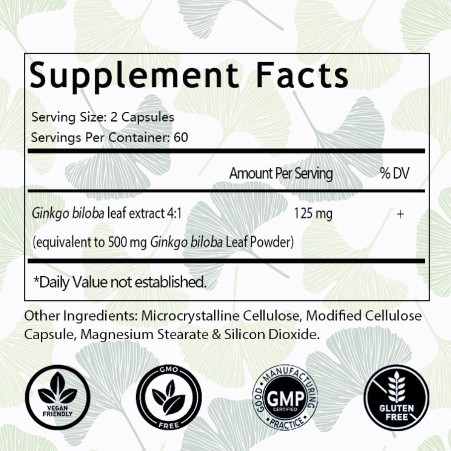 Complément de Ginkgo Biloba OEM/ODM, Force Maximale, Soutien à la Fonction Cérébrale et à la Mémoire, 120 Capsules Végétariennes