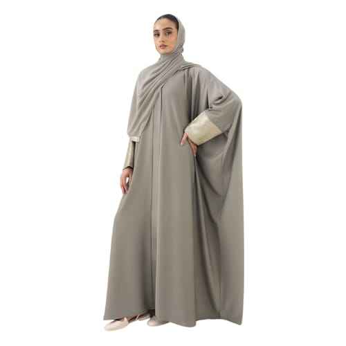 OEM/ODM Muslim Abaya Modest Denim Free Size Four Season Ruffles Front Lantern Sleeve City Women O Neck AA IMPEX