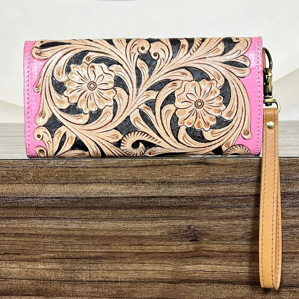 Product name:Hand Tooled Genuine Leather Wristlet Wallet