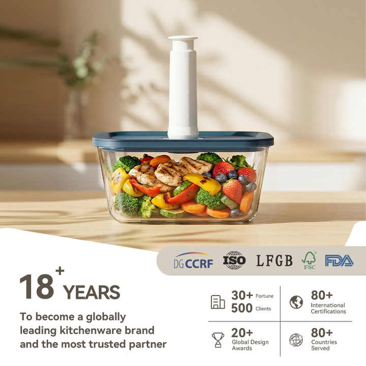 Contenant alimentaire en verre borosilicate haute qualité, scellé sous vide pour une fraîcheur durable.