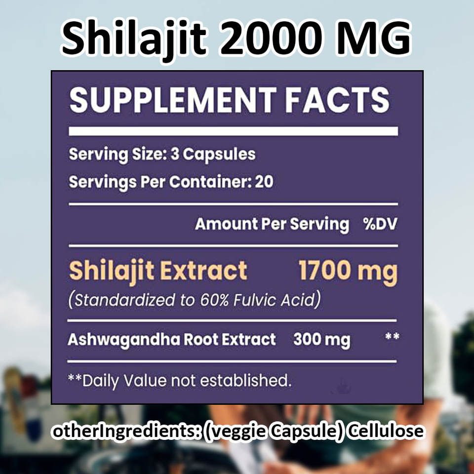 Ingrédient principal:Extrait de Shilajit biologique, Extrait d'Ashwagandha