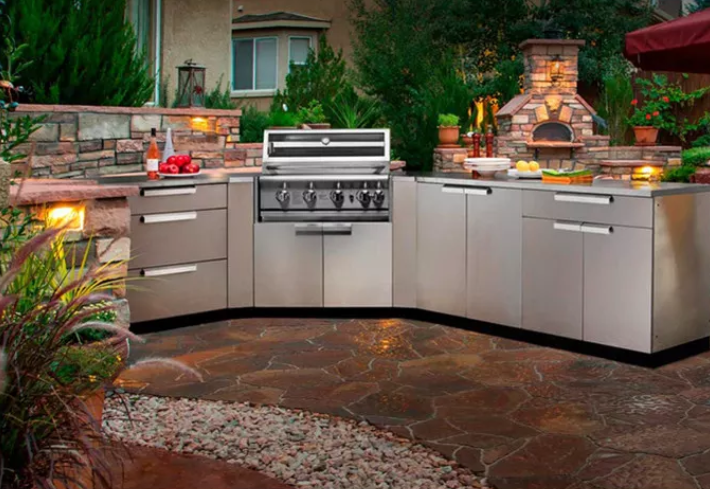 Meuble de cuisine extérieur en acier inoxydable de haute qualité, design moderne, OEM ODM, armoire de cuisine personnalisée, armoire extérieure