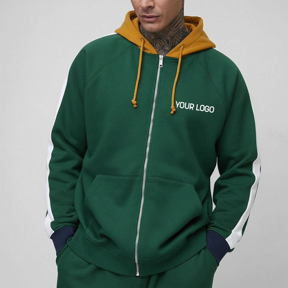 Sweat-shirt pour homme à capuche surdimensionné de haute qualité OEM/ODM, fermeture éclair, blocs de couleur, manches respirantes, rayures, style hip-hop