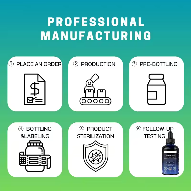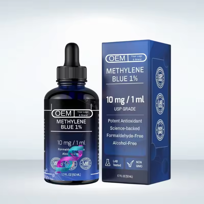OEM ODM Gouttes de bleu de méthylène de qualité USP 1% 50ml pour améliorer la mémoire et le sommeil des adultes, non destiné aux femmes enceintes ni aux enfants de moins de 24 mois