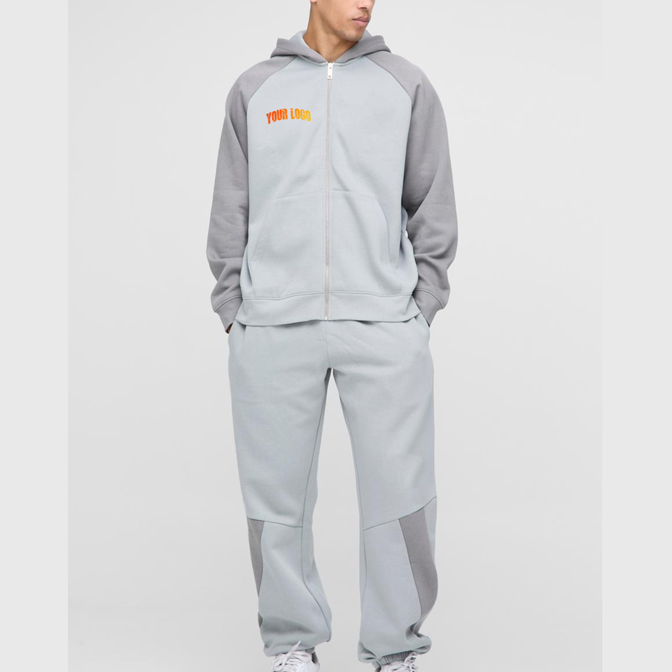 OEM/ODM Hooded Casual Moisture Wicking Breathable Solid Color Block Zipper Tracksuit Custom Printed Logo Regular Fit Winter Wear