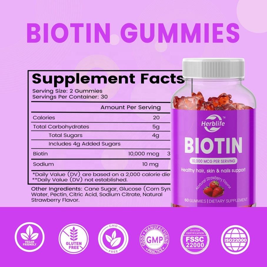 OEM ODM Hot Selling Vitamins Supplements 10000mcg Biotin Gummies for Healthy Hair Skin Nails