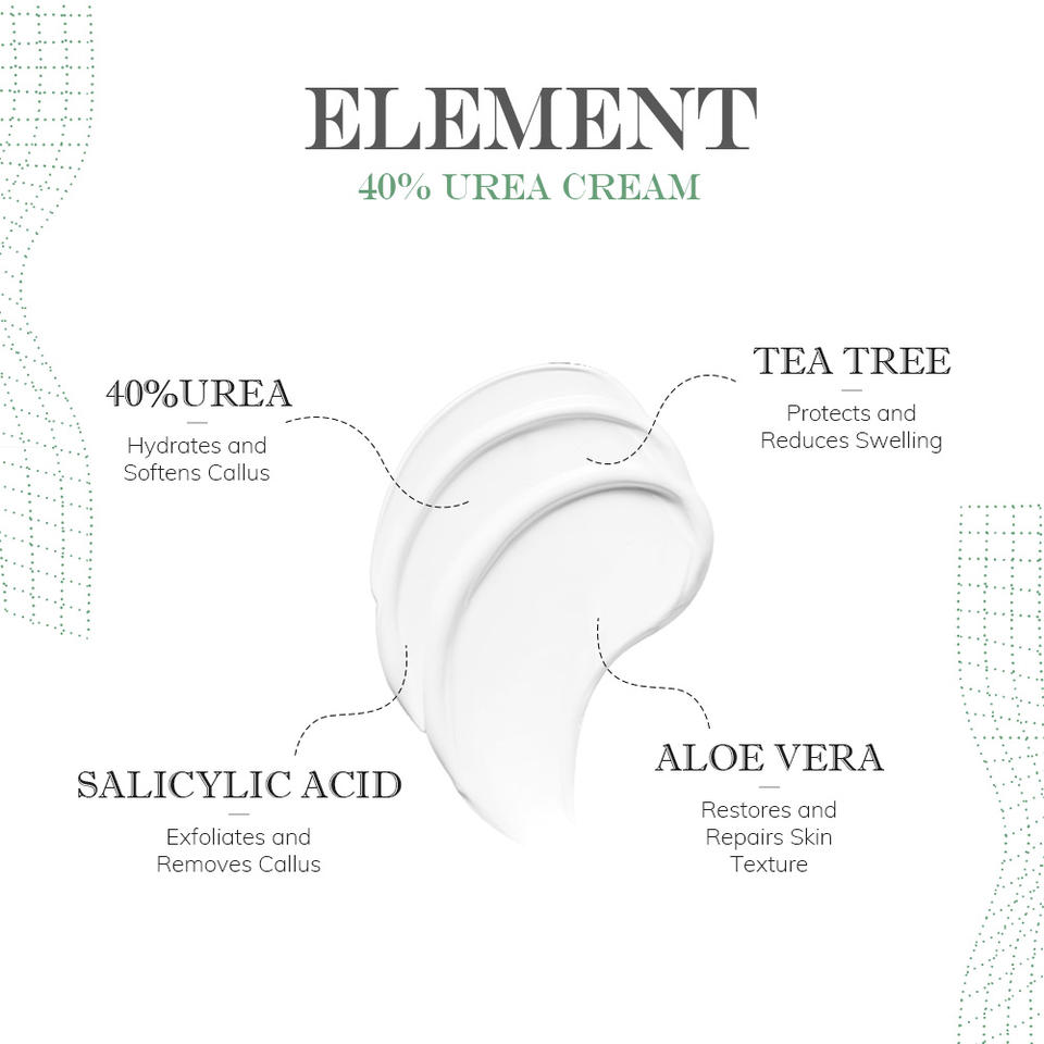 Sans cruauté, Vegan, 40%UREA,TEA TREE,2%SALICYLIC ACID,ALOE VERA