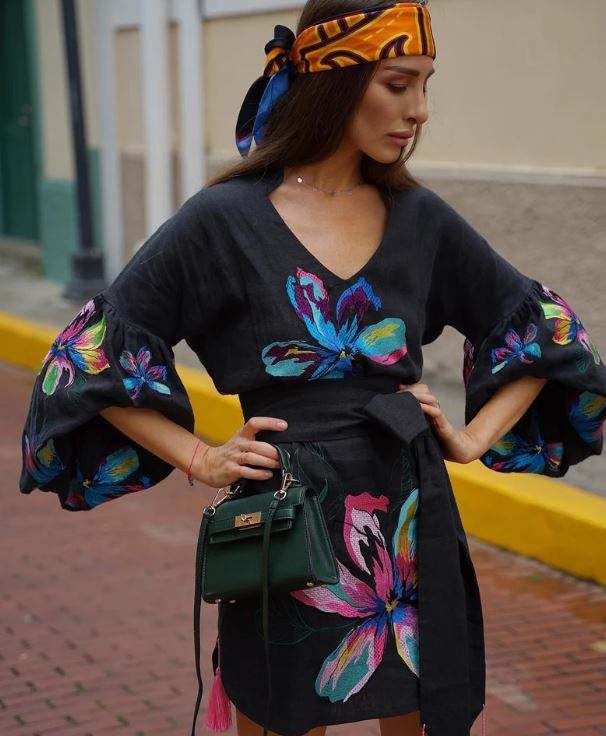 Broderie de conception OEM /ODM la plus récente sur la longue couleur noire pour les robes de femmes. Robes ukrainiennes à broderie blanche faites à la main