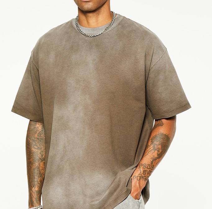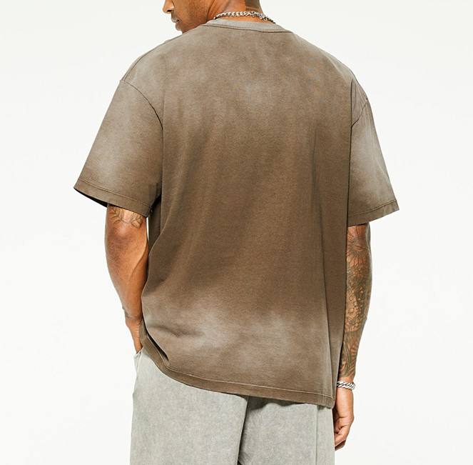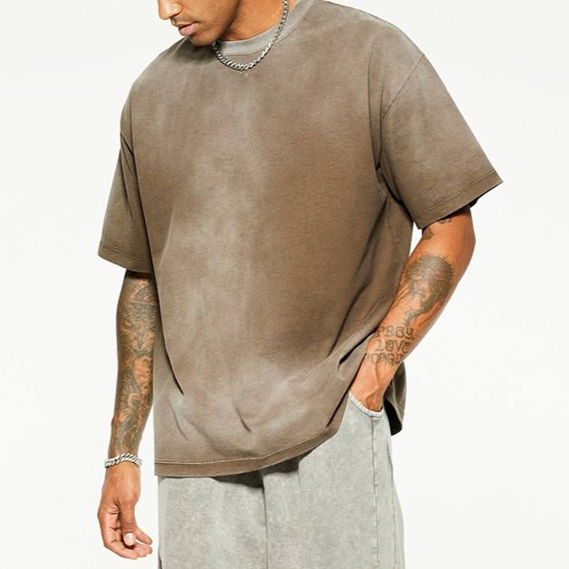 T-shirt Homme en Coton Délavé Tendance OEM ODM, Col Rond, Manches Courtes, Style Vintage Streetwear avec Logo Mode