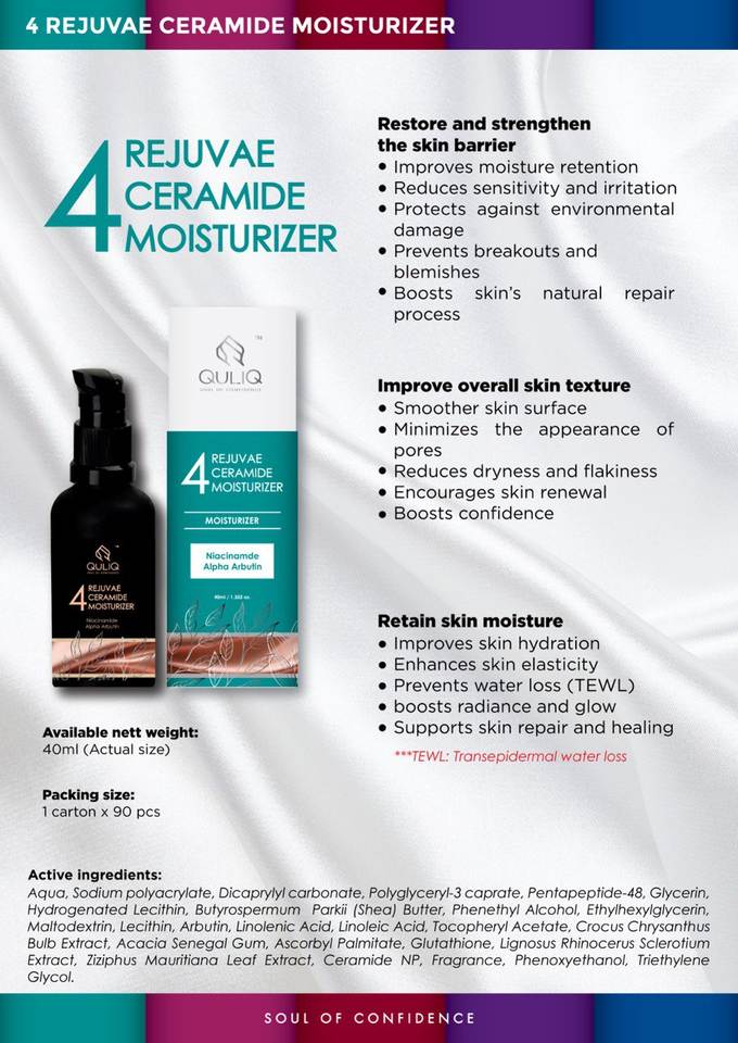 OEM/ODM Liquid Quliq Rejuvae Ceramide Moisturizer for All Skin Types Lightening Beauty Skincare for Glycerin Hyaluronic Acid