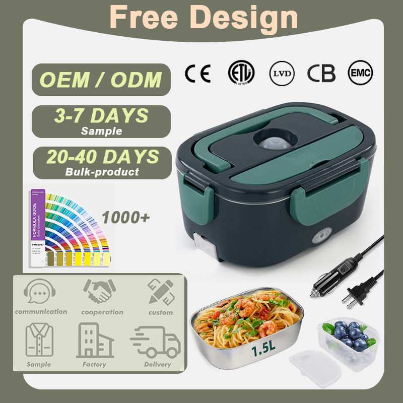 Boîte à lunch électrique portable OEM ODM avec logo/couleur, chauffe-aliments électrique en acier inoxydable de 1,5 L