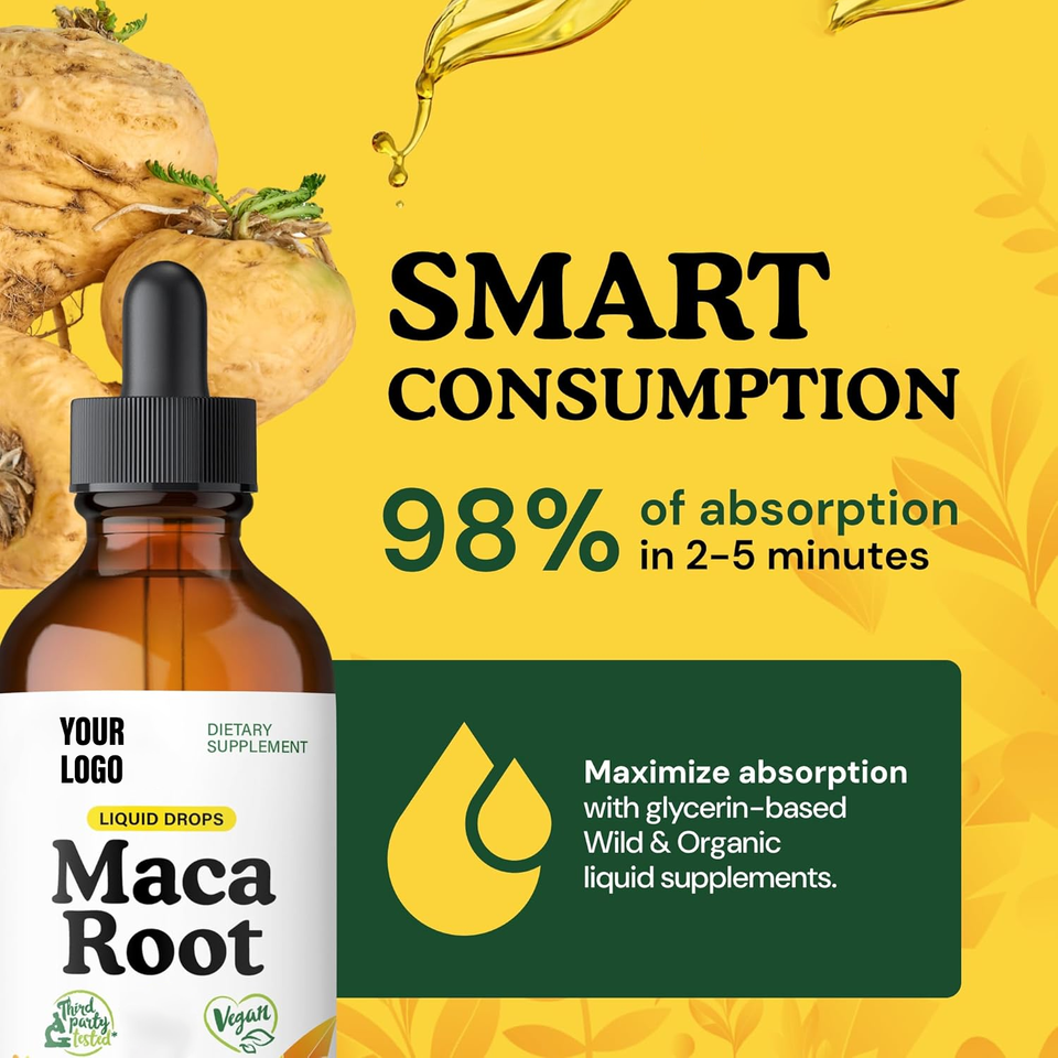 OEM et ODM Maca Oral Liquid Supplément énergétique Extrait de racine de Maca Ashwagandha Maca Gouttes liquides