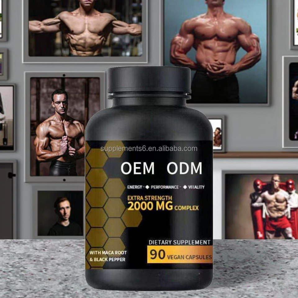 Capsules d'amélioration masculine à base de racine de Maca OEM/ODM, formule naturelle végétalienne, soutien à la santé de la prostate, stimulation de l'énergie, personnalisées pour adultes