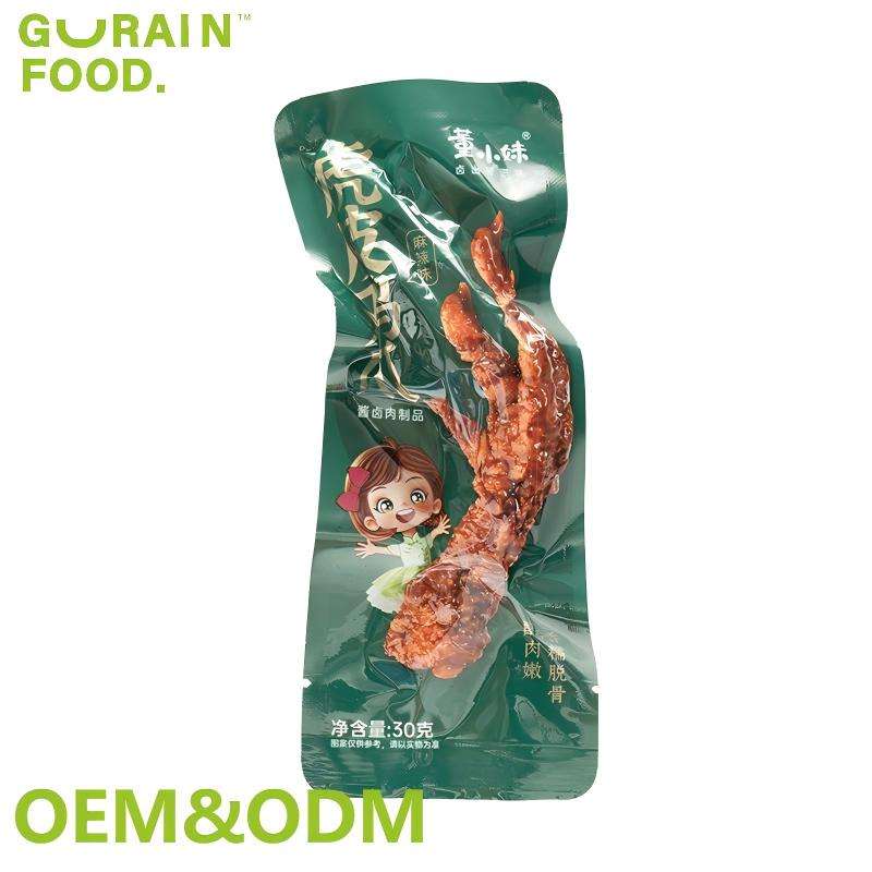 Produits à base de viande OEM ODM, Snacks à base de viande, Poulet 30G, Pieds de poulet frit au goût piquant et épicé