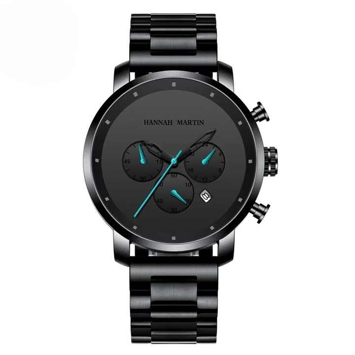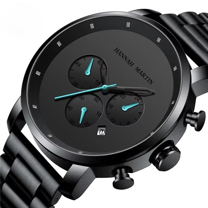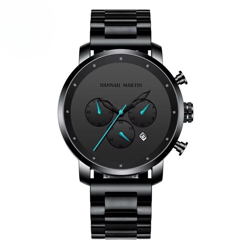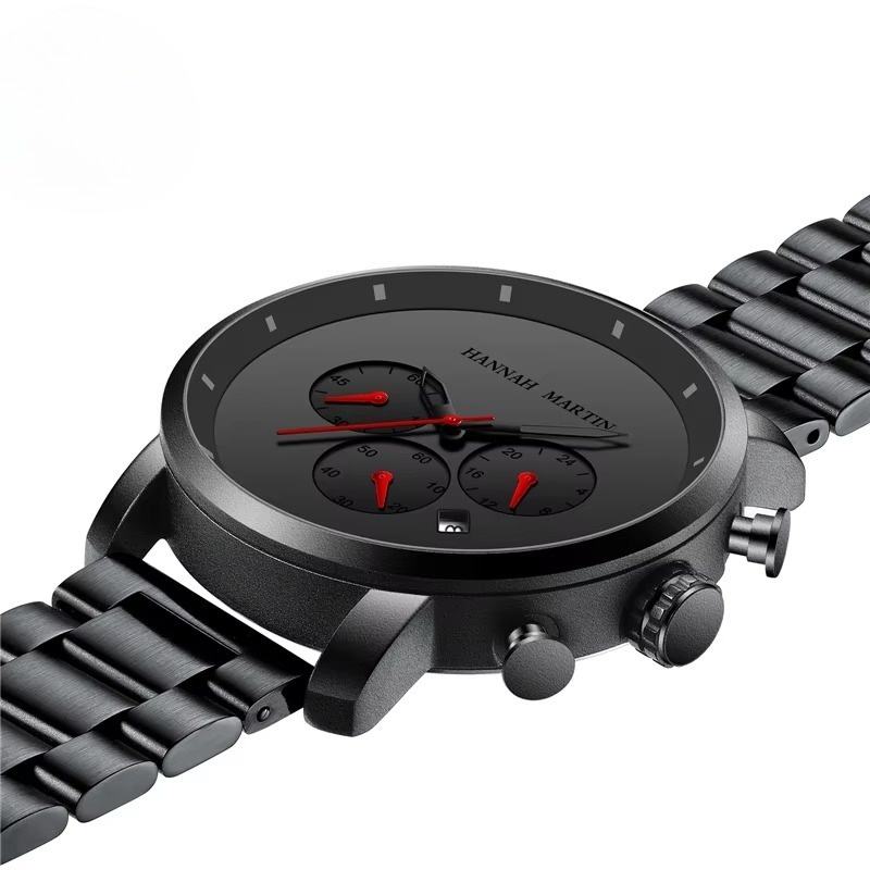 Montre chronographe pour homme OEM ODM, bracelet en acier inoxydable noir, étanche, calendrier, décontractée, business, quartz, taille réglable