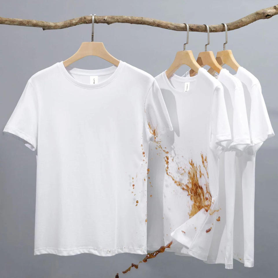 T-shirt d'été pour homme OEM/ODM, couleur unie, col rond, imperméable, résistant aux taches et à l'huile, respirant