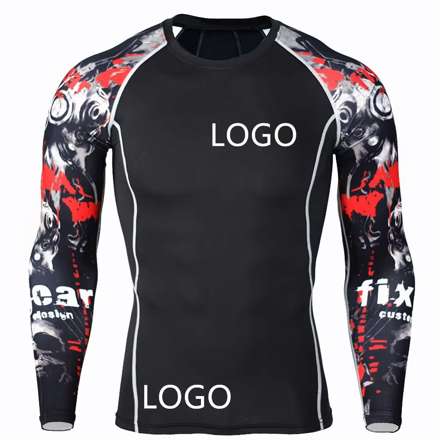OEM ODM Rashguard pour hommes en Spandex imprimé par sublimation, Rashguard BJJ, Rashguard de compression pour la gym, le surf et la plongée, T-shirt MMA