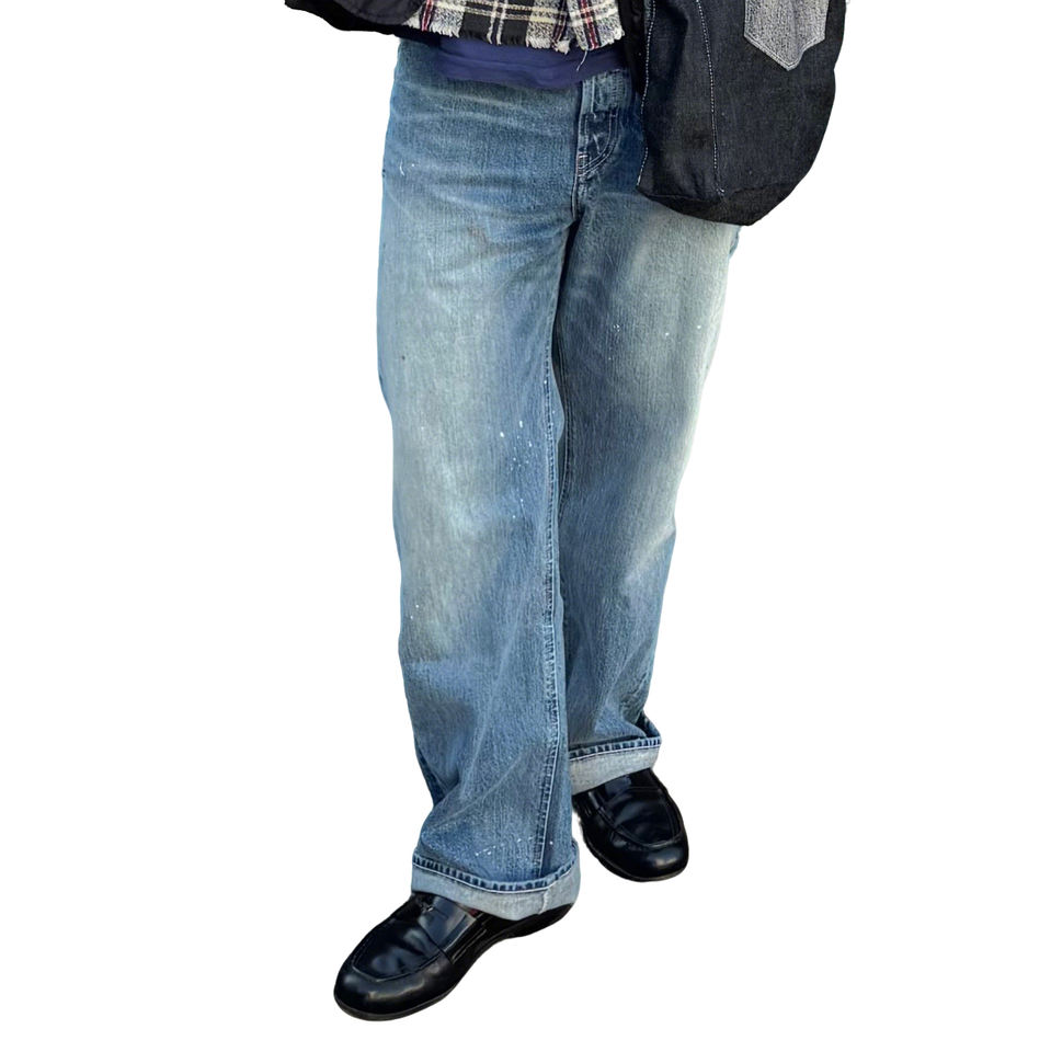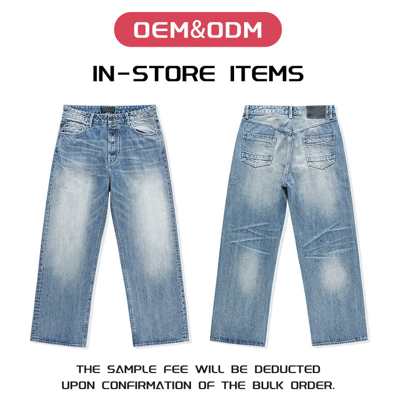 OEM ODM Mens Ripped Straight Jeans Okayama Blade Selvedge Denim Honeycomb Washed Splatter Paint Distressed Vintage Pants
