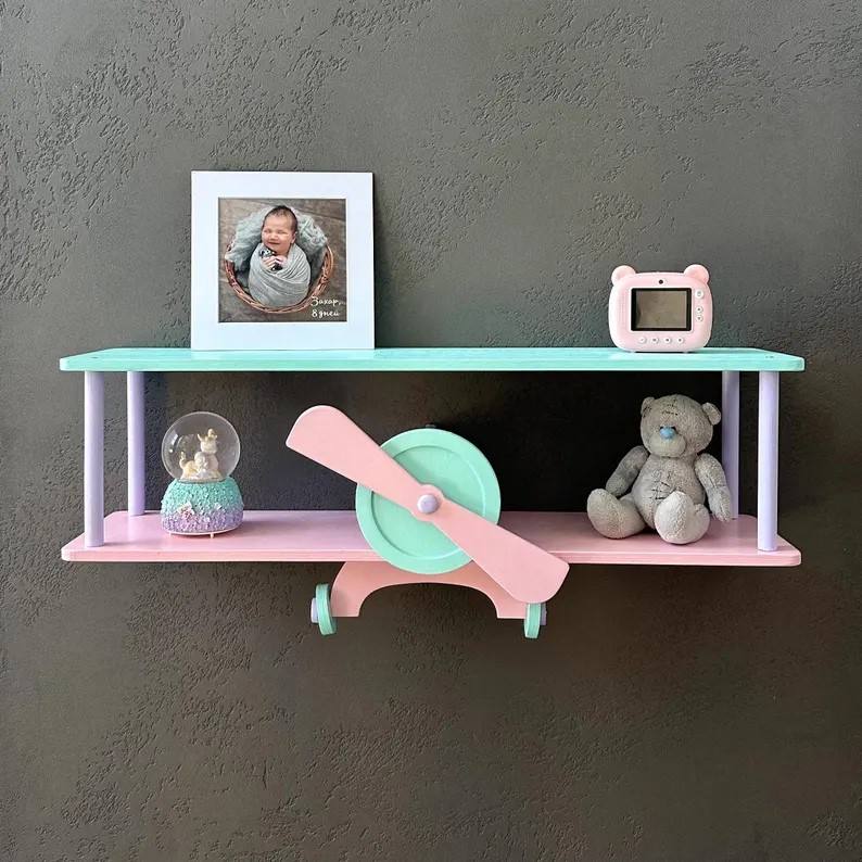 Étagères flottantes en bois pour enfants, modèle 10020, OEM ODM Minghang, étagère murale pour chambre d'enfant, décoration d'aviation, organisateur pour petit-enfant/fils