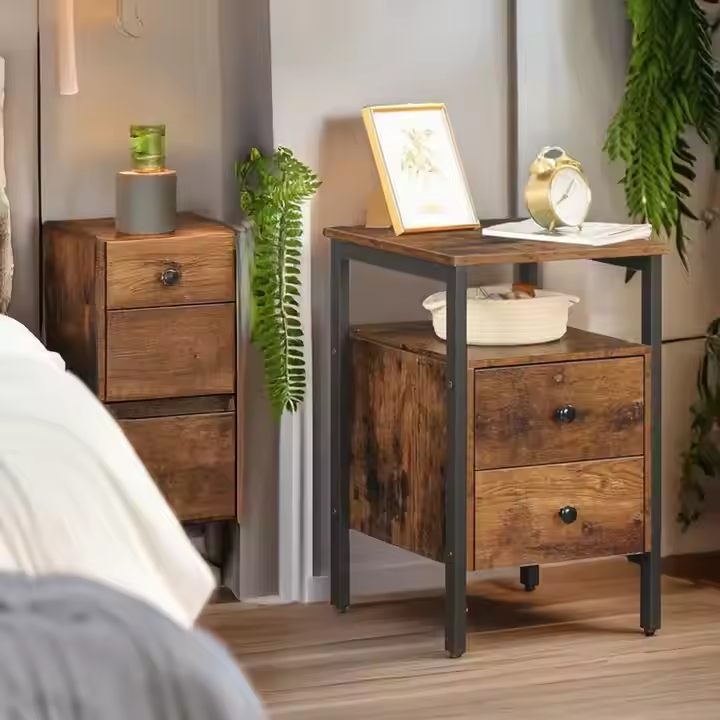 Tables de chevet en bois à 2 tiroirs OEM & ODM, modernes, rustiques et industrielles, pour la maison, le salon, la chambre à coucher