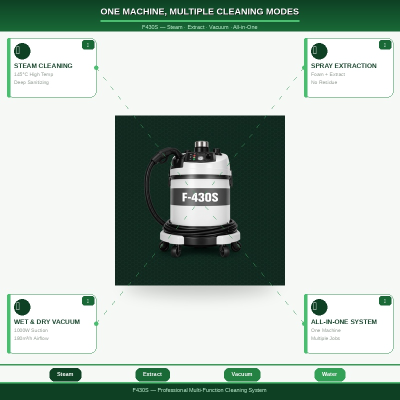 Machine de nettoyage de tapis multifonction OEM ODM, extracteur de vapeur, aspirateur, nettoyeur de tapisserie, canapé F430S 2600W, garantie 1 an