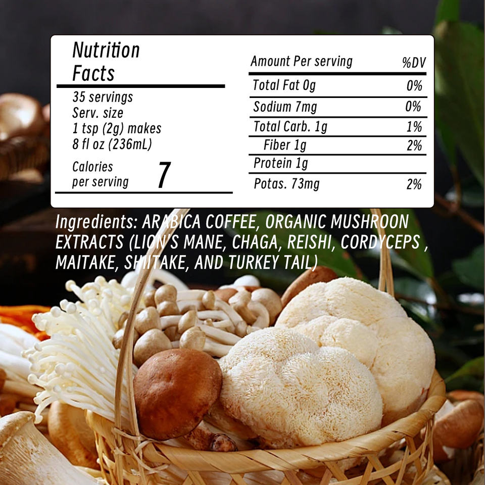 Main Ingredient:Organic Mushroom Blend, Organic Instant Arabica Coffee, Organic MCT Oil
