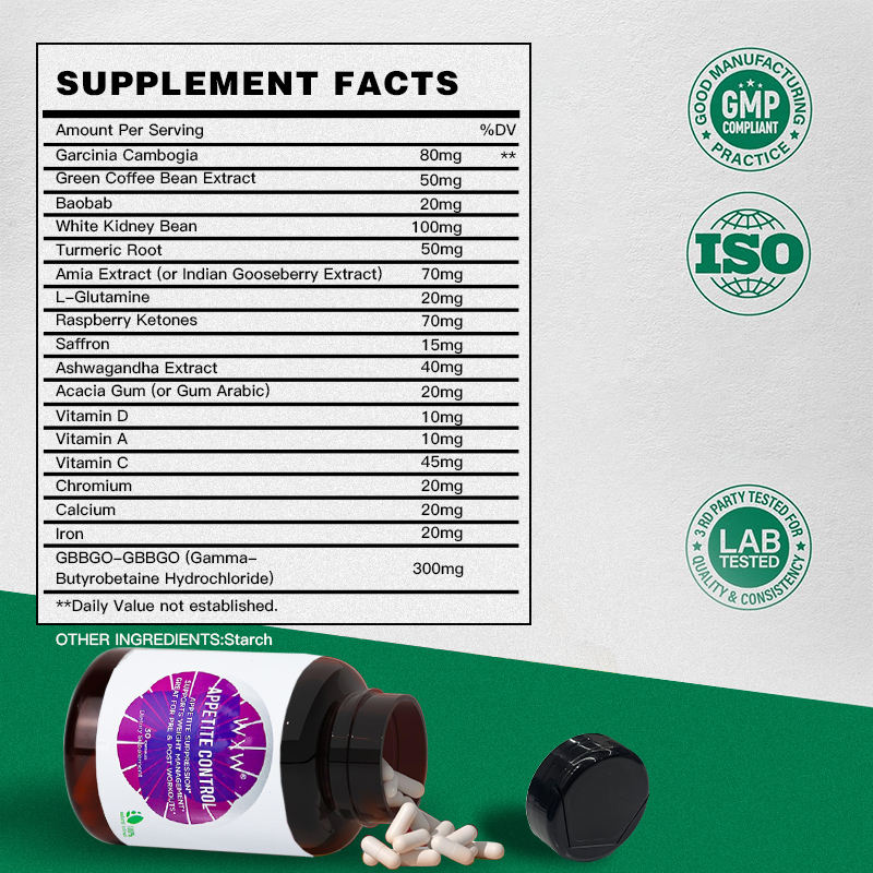 OEM ODM Natural Garcinia Cambogia Appetite Suppressant Capsules for Weight Management