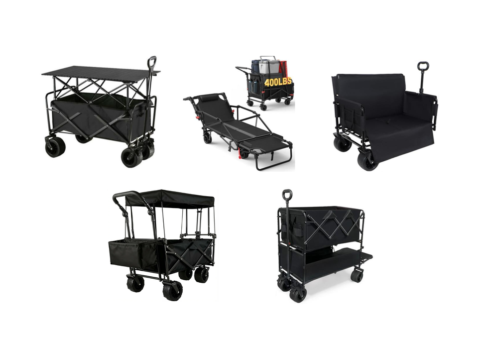 Chariot de pique-nique pliable, portable, étanche, pour le camping, la pêche, personnalisable OEM ODM OBM, avec roues en PVC de 5 pouces