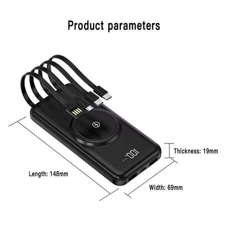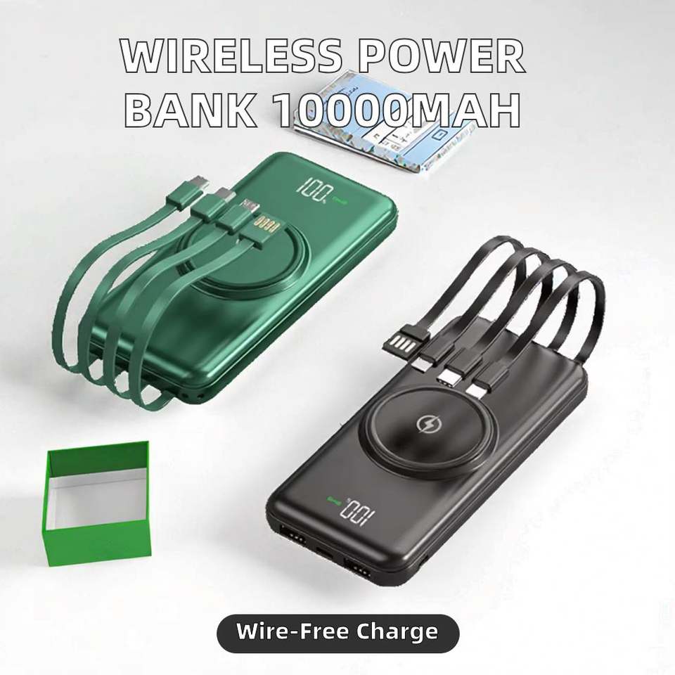 OEM/ODM - Batterie externe portable haute capacité 10000 mAh avec charge sans fil, écran LED et câble intégré