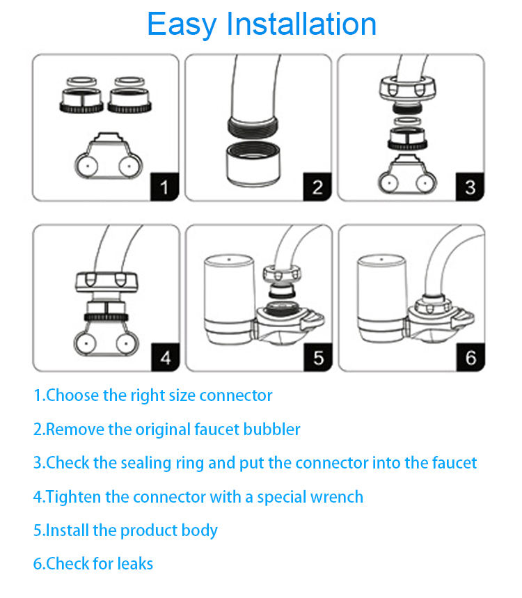 Filtre purificateur d'eau pour robinet de cuisine, mini, portable, à charbon actif alcalin, monté sur robinet, en ABS de qualité alimentaire, OEM ODM